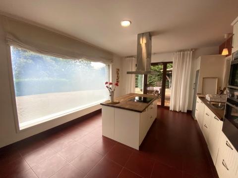 The bottom part of the big garden is completely flat and was designed to accommodate a children's football pitch or a swimming pool some time in the future. It also has a covered barbecue area with a sink adjacent to a covered dining area. This has direct access to the fully equipped high specification kitchen with a central island and induction hob, extraction hood and a large picture window.