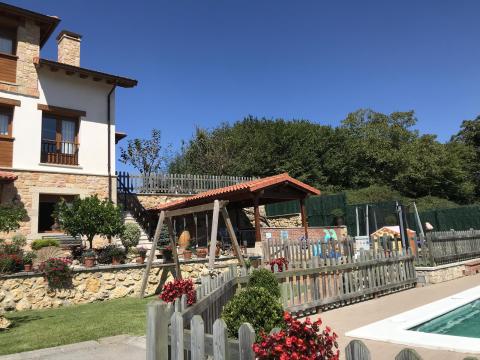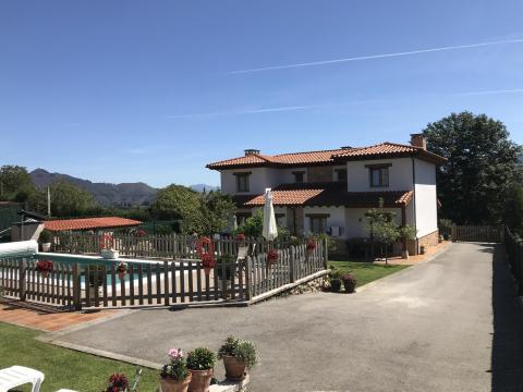 There are well manicured gardens and a communal swimming pool which have views towards the Picos de Europa mountains.