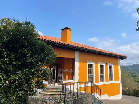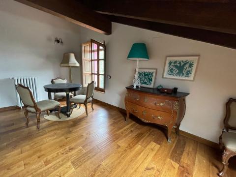 This fantastic property of about 540m2, was completely renovated in 2012 and comprises 3 floors. The ground floor has a large living room with a fireplace. There is a dining area with a large Oak table seating 16 people for meals and a spacious fully equipped kitchen. In addition there is a large utility area, a bathroom with toilet and shower and a wine cellar. On the first floor there are 4 bedrooms with ensuite bathrooms. There is another large living room with an open fire as well as a large galleried room with fantastic views to the hills in the distance. The attic space has another bedroom, a bathroom and a dressing room and a third living room. In the same living space but completely independent, there is an apartment of 45m2 with one bedroom, a bathroom, an open plan kitchen diner and a workshop/studio area. Separate from the main building is a large boiler house with a 1000 litre oil tank, boilers for the heating and hot water, and a separate back up water tank. There is also a "Panera" (Asturian granary) and 20,000m2 of land. Everything is is excellent condition. There is parking for 4 vehicles and the property is connected to the mains water and sewage.