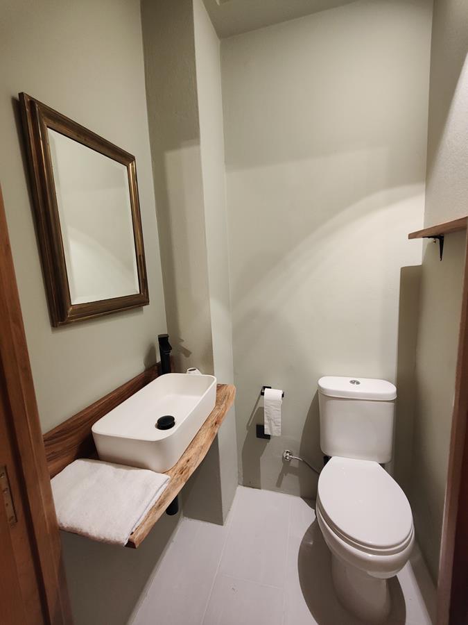 Lower Floor: A mature palm tree greets you at the entrance from the asphalted drive and parking, leading to the Offices and Large Salon with bar area and small kitchen, dining room, living room with Billiard Room with fireplace, 2 bedrooms with en suite bathrooms, and another bathroom.