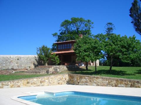he palace comes with 10,000m2 of land all fenced by masonry stone wall of 6m height in some areas, swimming pool and glassed paddle/tennis court. The views to the Bay of Biscay and Sueve Mountains enjoyed from the property are truly amazing.
