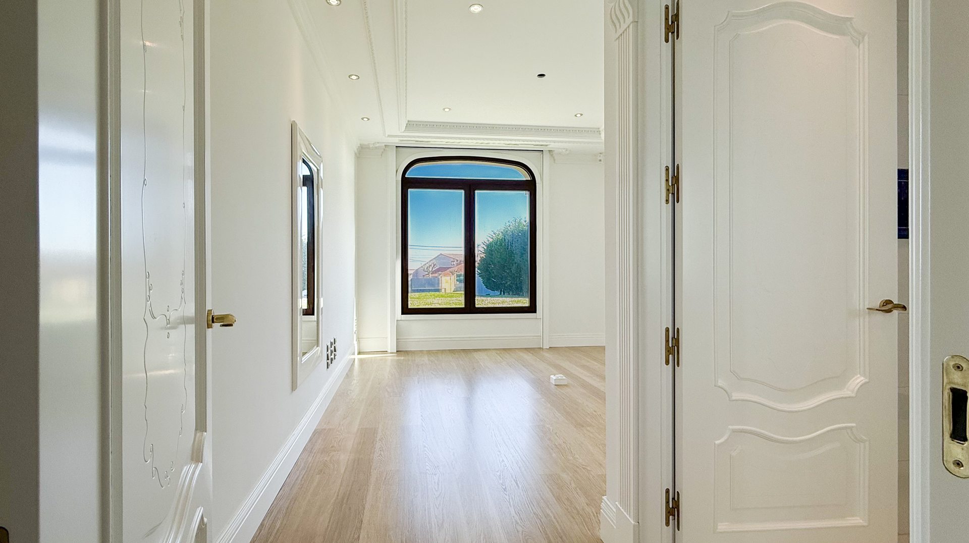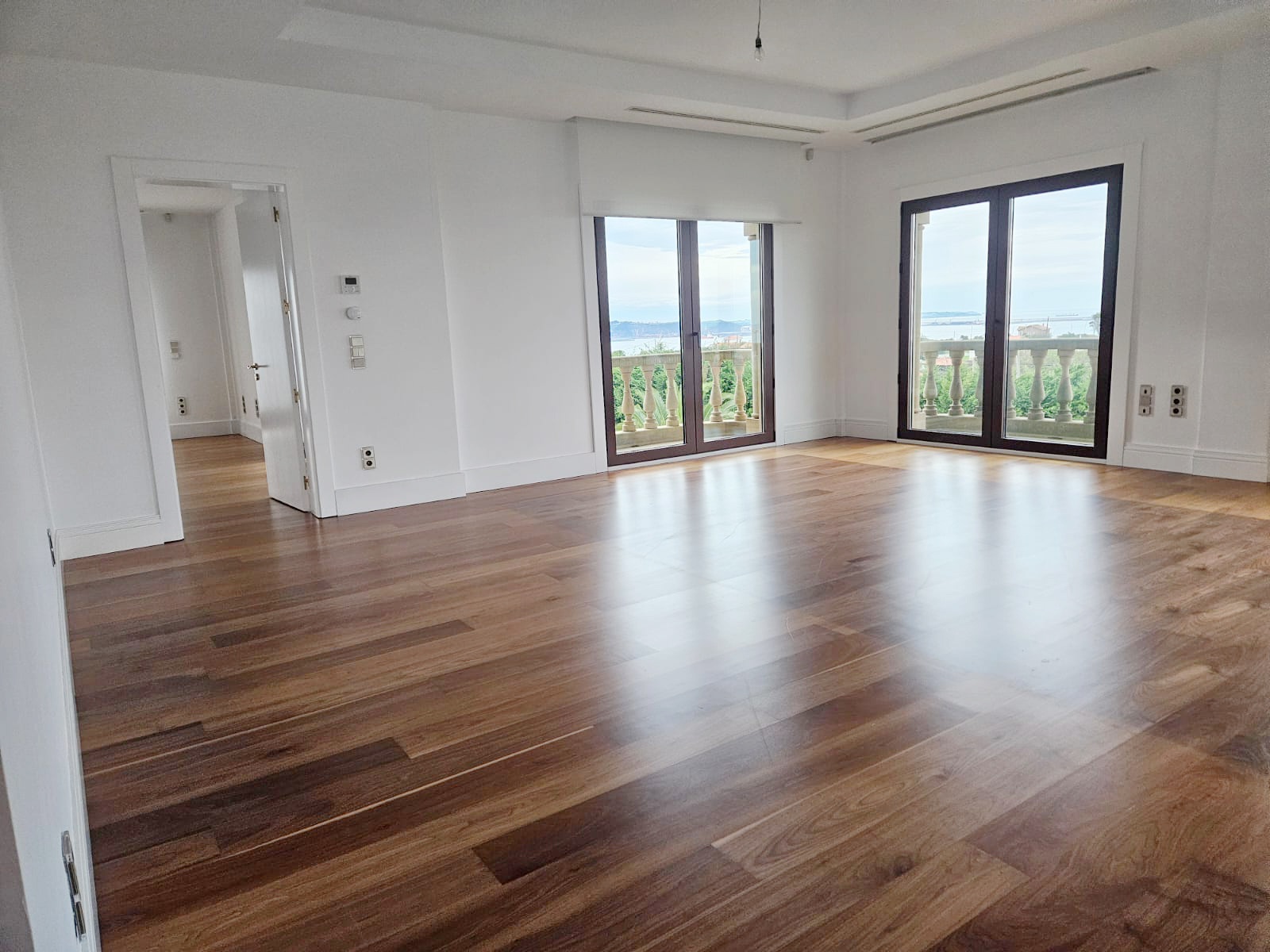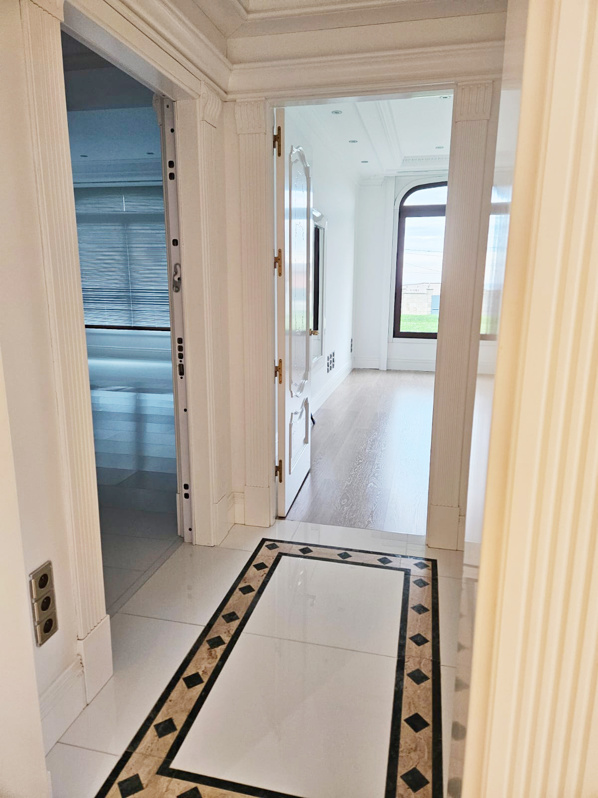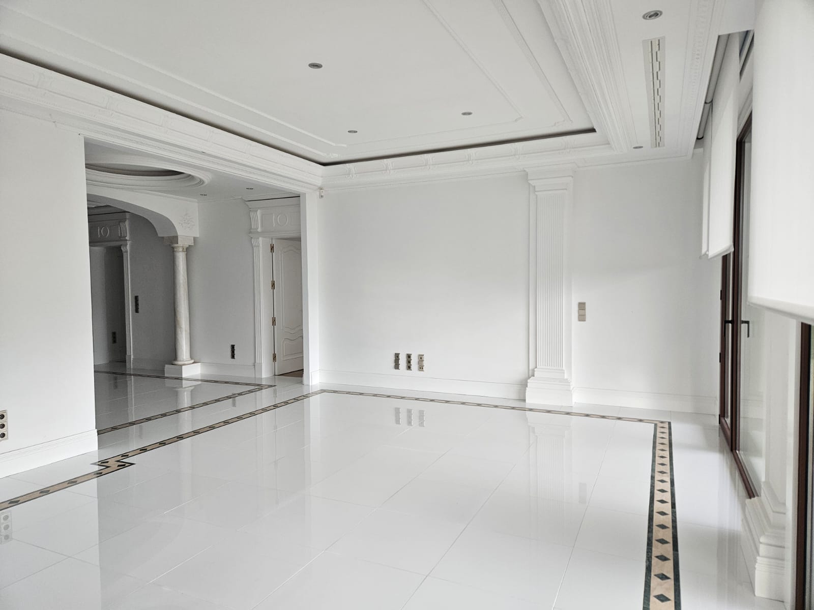 The interiors showcase high ceilings with decorative mouldings, marble floors and fine woods, creating an atmosphere of distinction and refinement. Bright and spacious, the home offers a warm and inviting ambiance throughout.