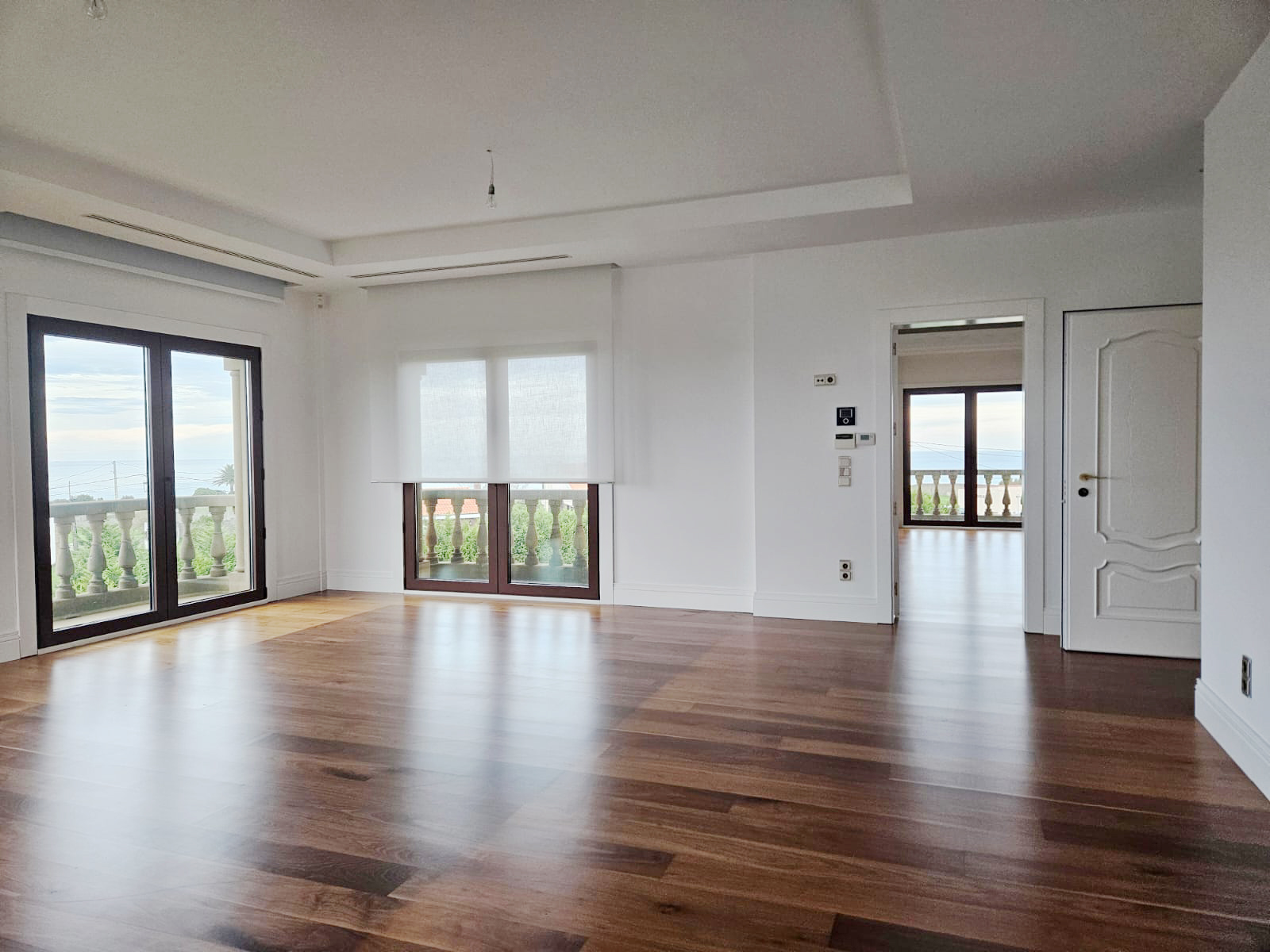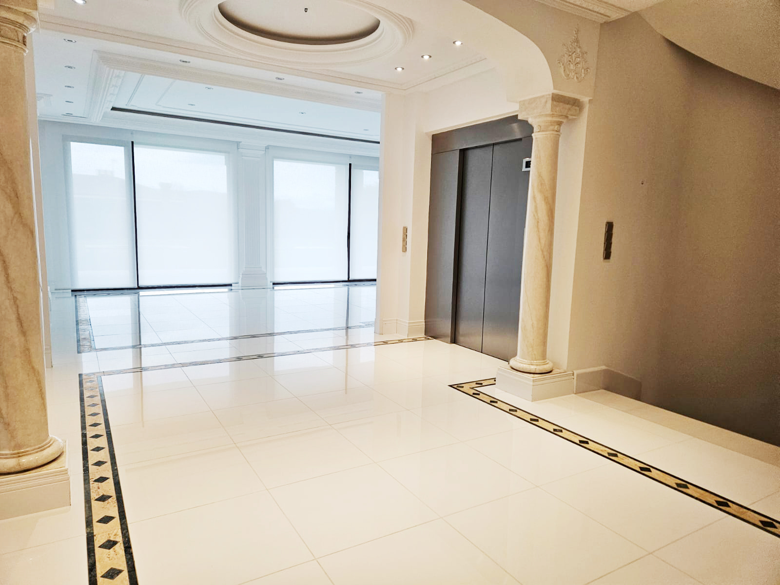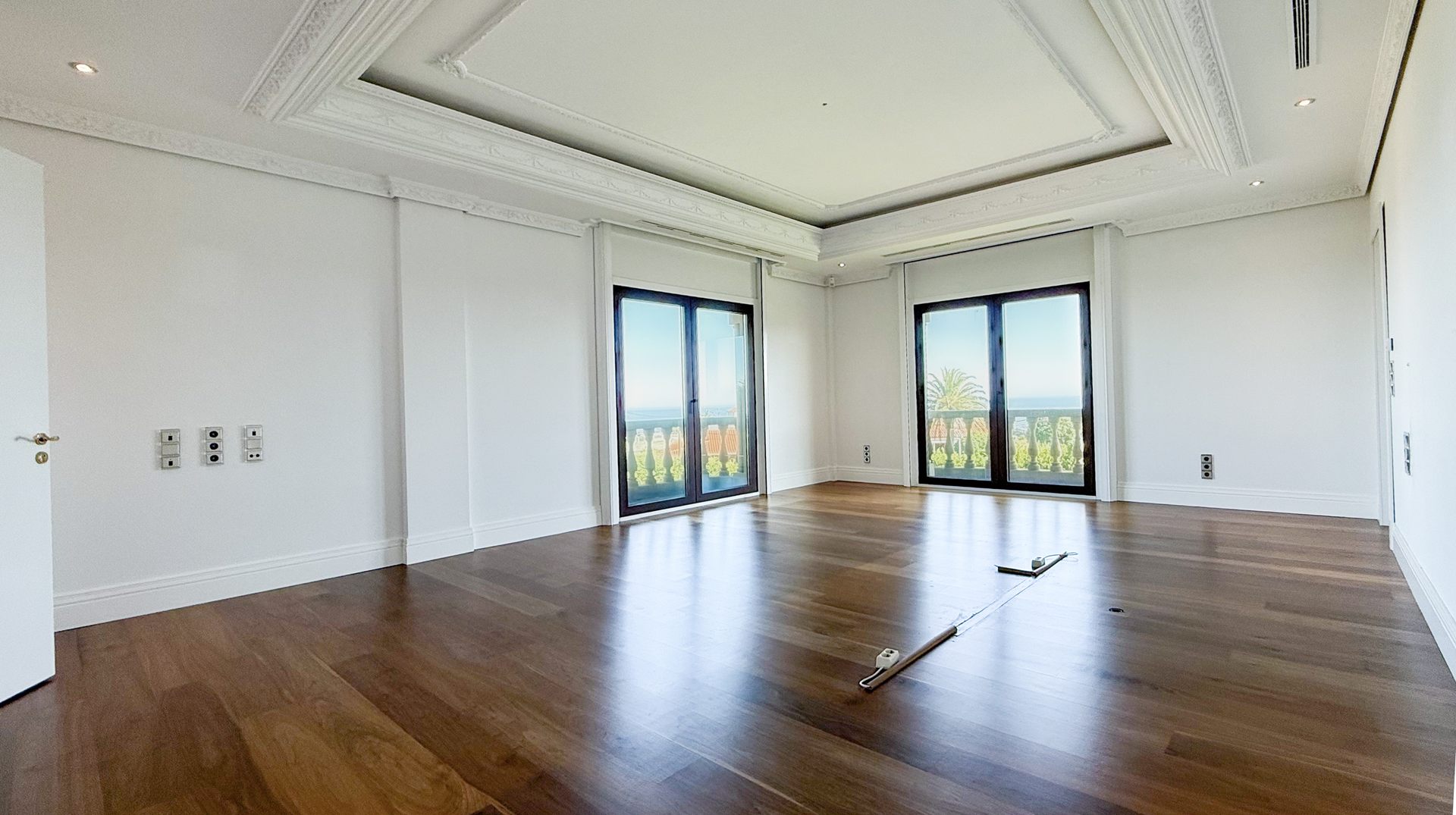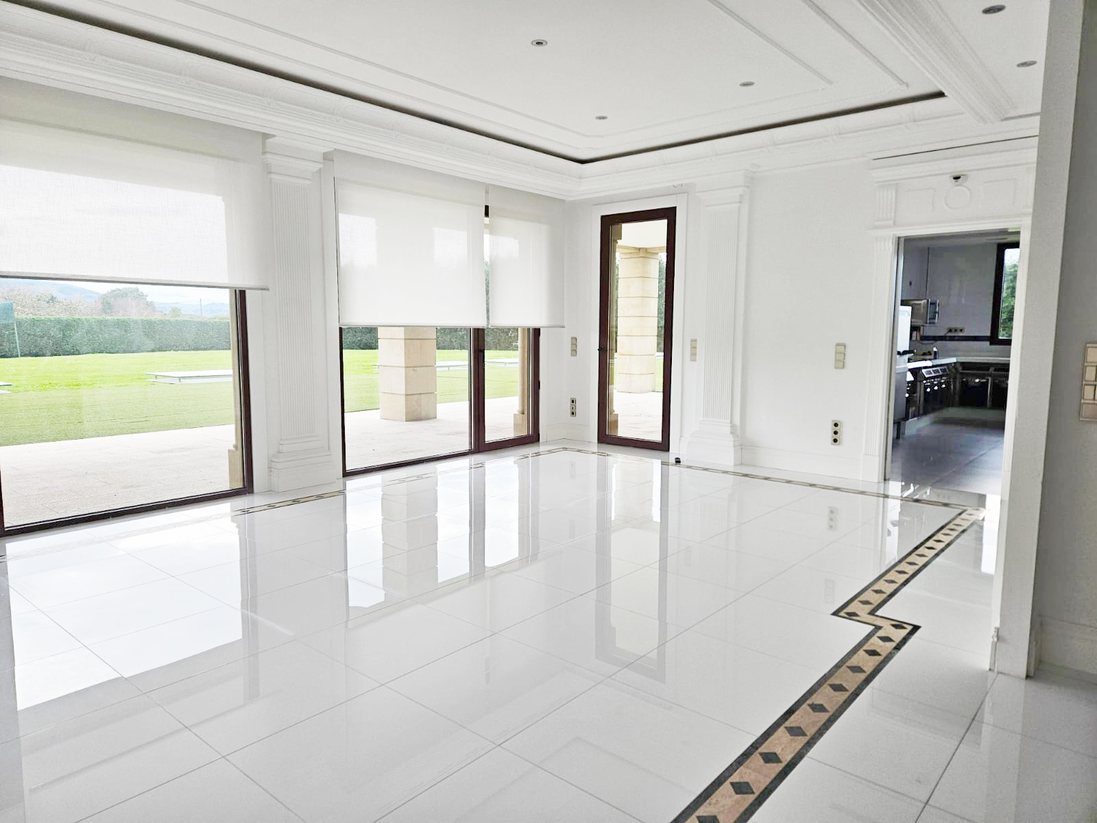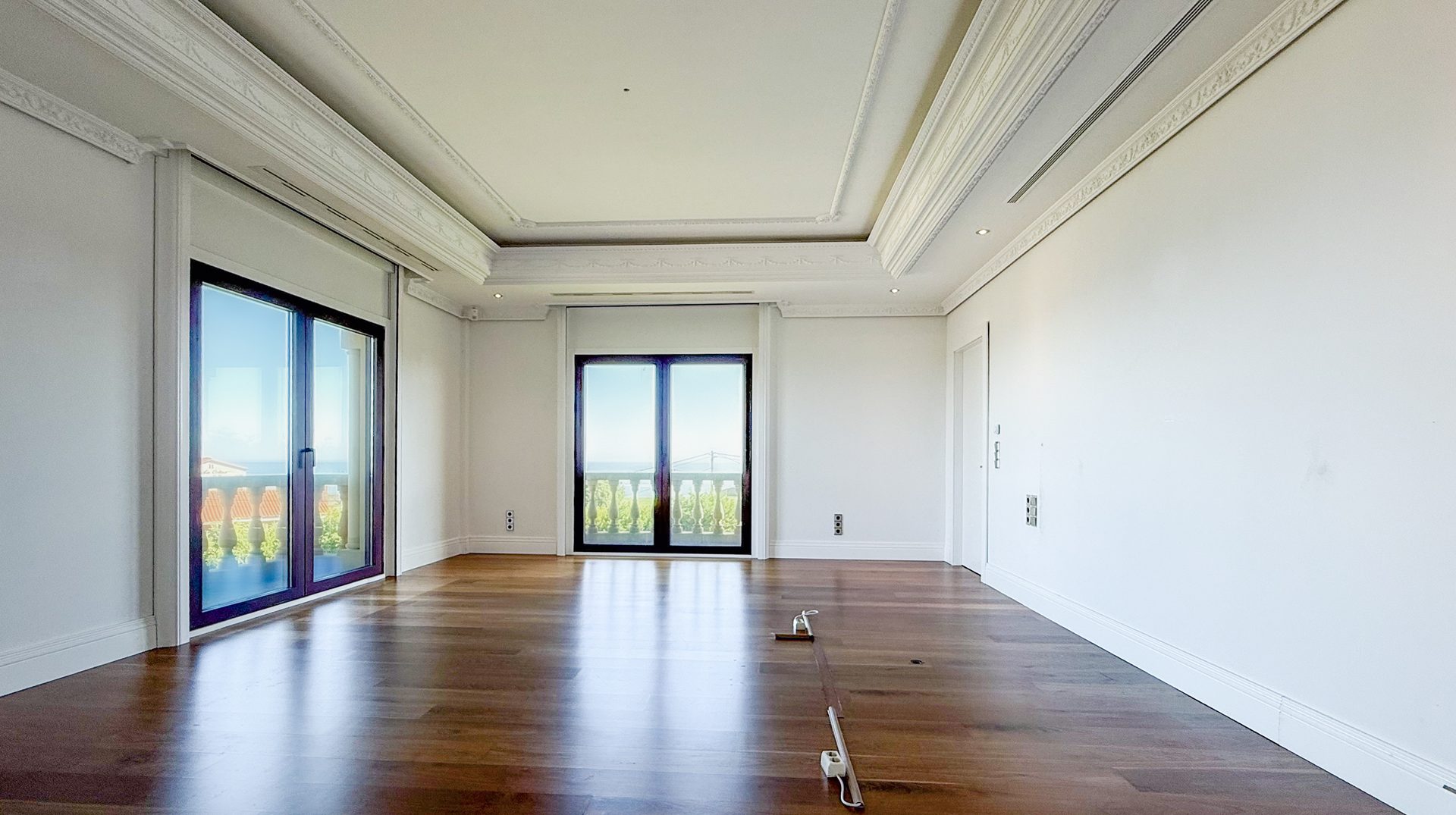 The interiors showcase high ceilings with decorative mouldings, marble floors and fine woods, creating an atmosphere of distinction and refinement. Bright and spacious, the home offers a warm and inviting ambiance throughout.