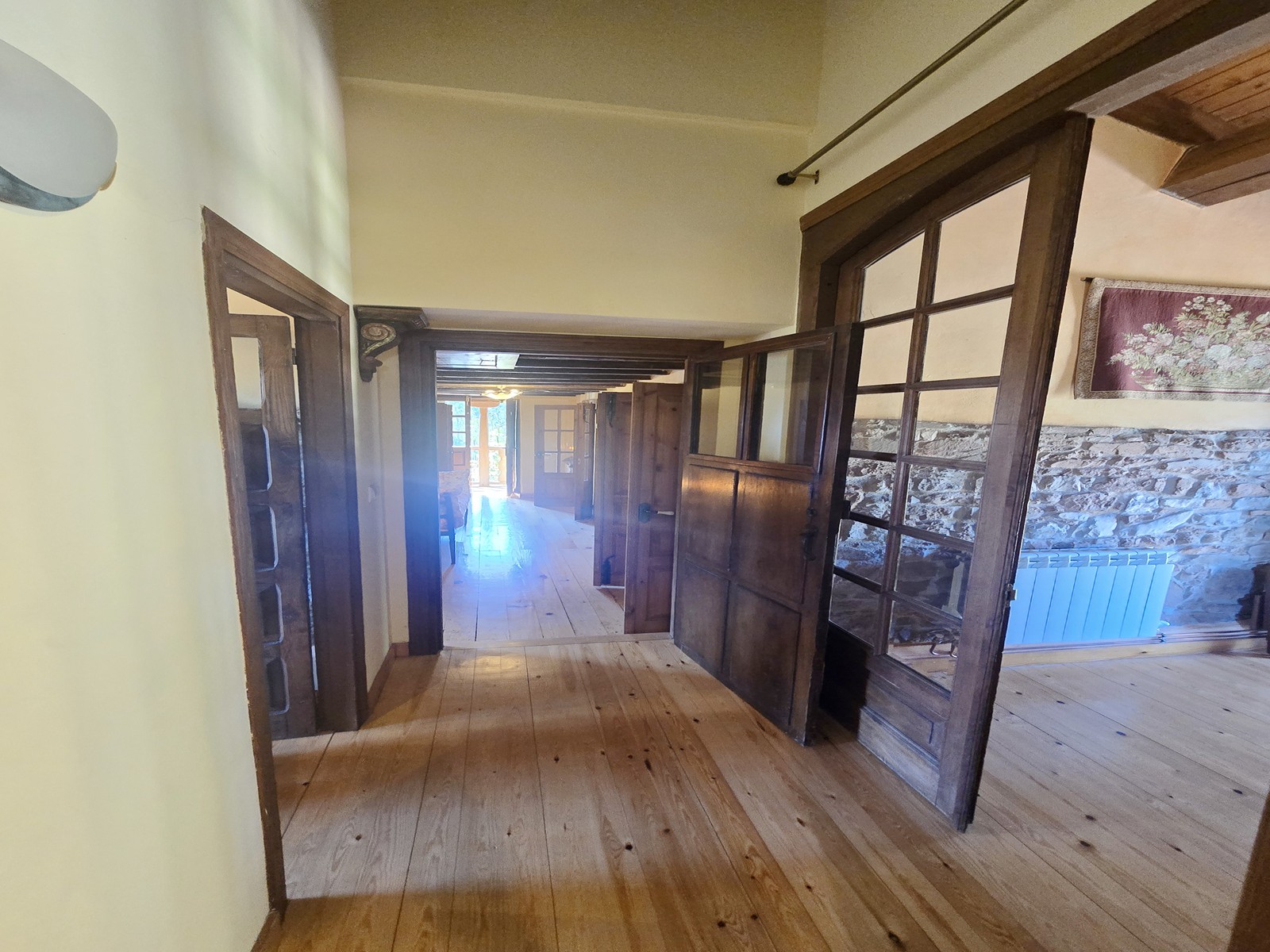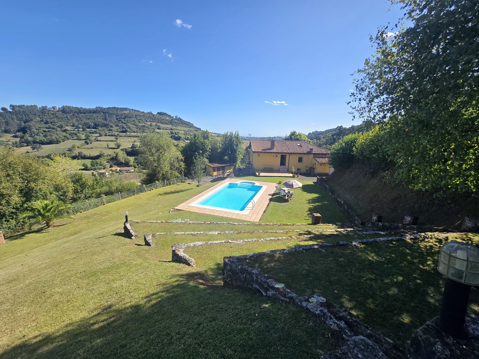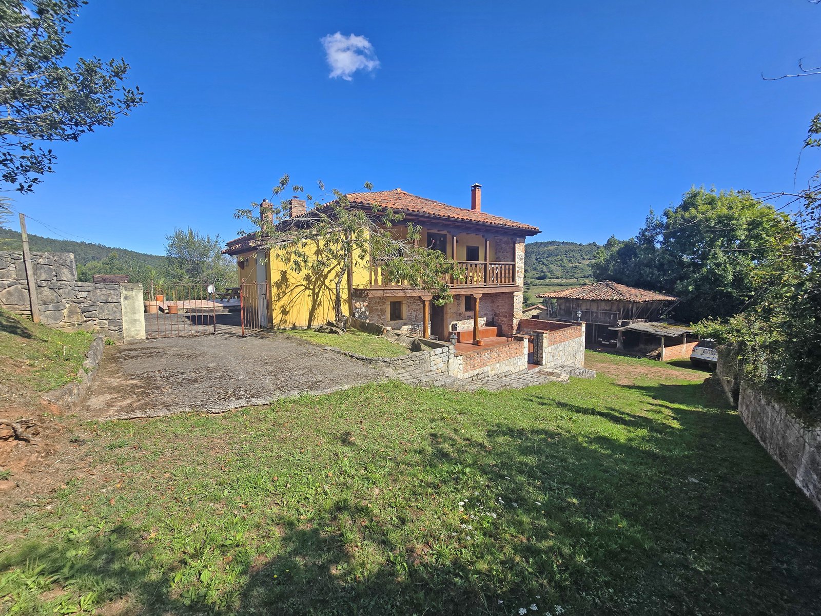 Originally a traditional Asturian stone house, it was fully restored in 2007 to combine authentic character with modern living. The estate includes a magnificent 200-year-old Asturian granary (“hórreo”) with garage on the ground floor, a semi-detached storage building, three additional storage sheds, a private water well, and a swimming pool with lighting – all set within 10,000 m² of land offering privacy and endless possibilities.