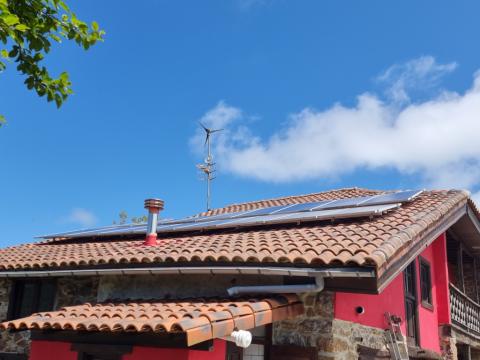 The water comes from a borehole and the electricity from solar panels. There is a septic tank, the heating is driven by a pellet burner and there is a wood burning stove.