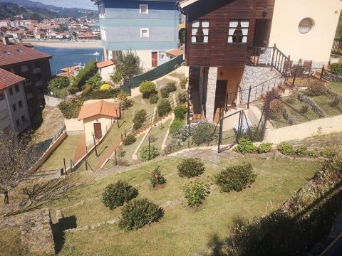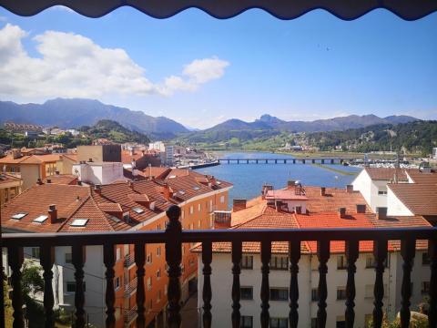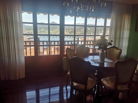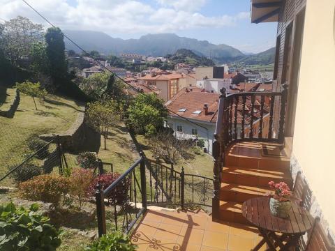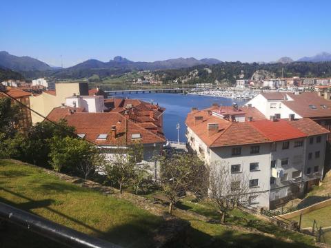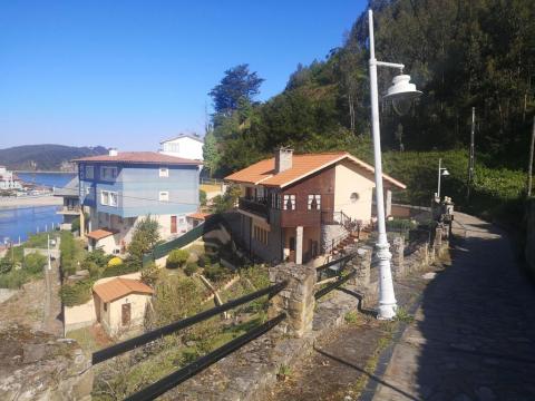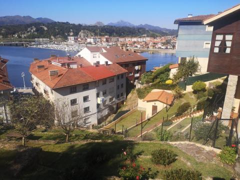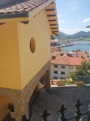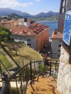 On the upper floor there is a fully fitted kitchen with a 'cocina de leña' (similar to an Aga) with dining area, open plan living/dining room with fireplace and access to a terrace with spectacular views to the estuary and mountains. There are 2 bedrooms (one with en suite bathroom and balcony) and a further bathroom.