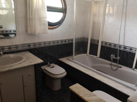 Downstairs we find a large garage with space for 3 cars, and a toilet with shower. Ideal also to convert into an apartment with 2 double bedrooms.