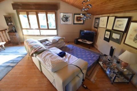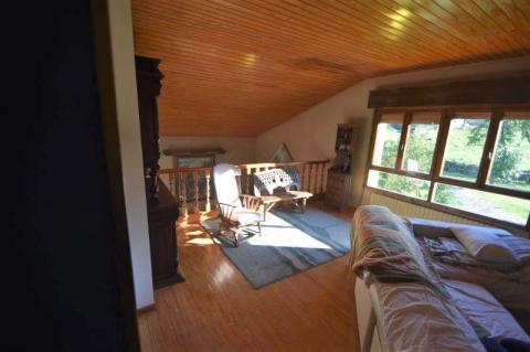 On the ground floor the property is accessed via a porch. Inside is a large living room/dining room with an open fireplace and impressive large windows. There is a fully fitted and equipped kitchen with a pantry. On this floor there is also a bedroom and bathroom.